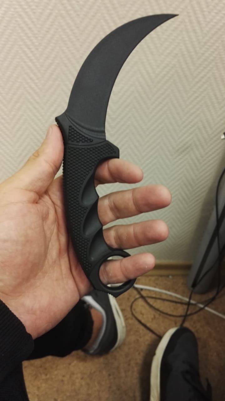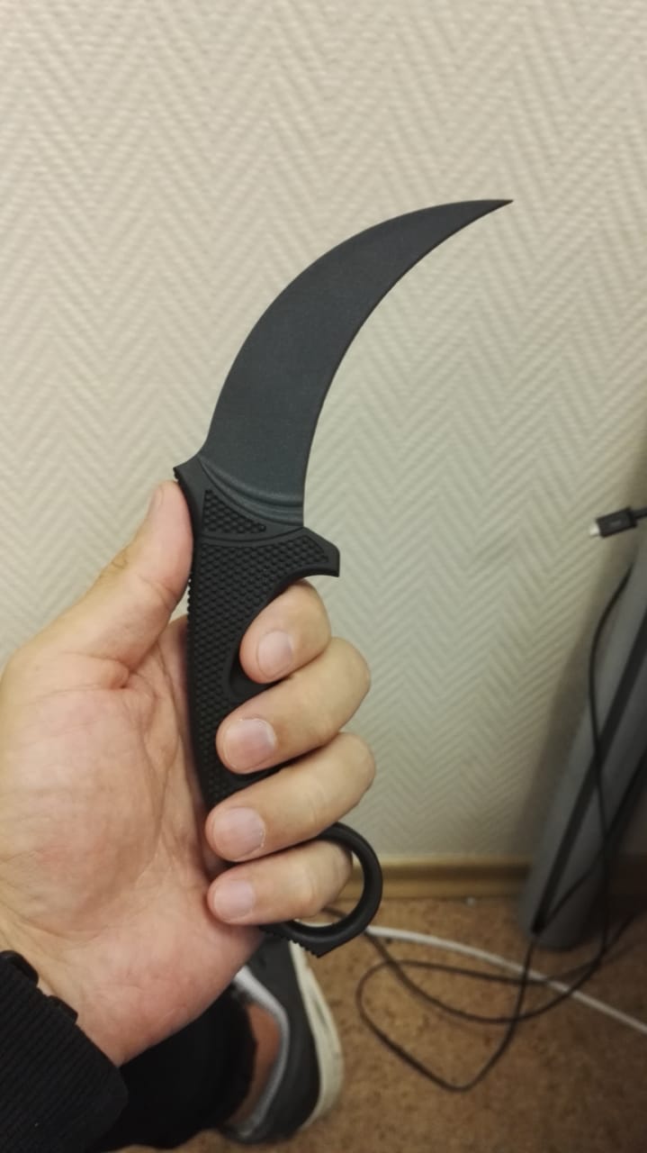 Клинок из супер пластика, резиновая ручка, точная копия реального керамзита. Супер качественный товар за смешные деньги, дешевле китайских игрушечных ножей, которые проживут у вас максимум два дня. Все понравилось: и общение со специалистами мгазина, и товар, и цена, и сроки доставки. 5 баллов с плюсом!