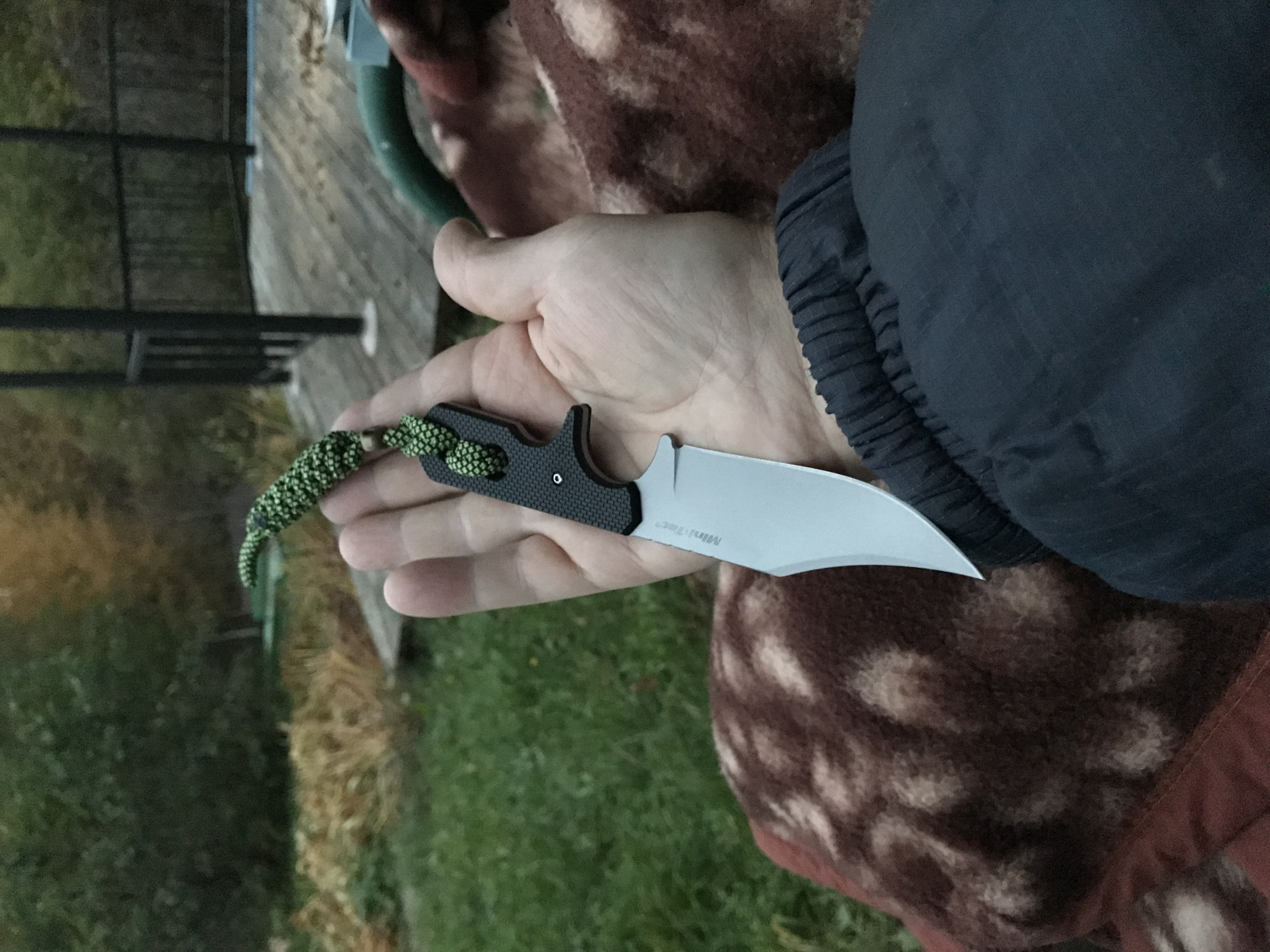 Компактный, стильный городской EDC. Очень хорошее соотношение длины клинка к общей длине ножа - рукояти вполне достаточно, учитывая, что нож городской и не для силовых работ, и у неё удобный хват. Качество исполнения хорошее. На гранях рукояти были немного колючие края, но это решается нулёвкой за 5 сек, в остальном всё отлично. Ножны шикарные. Отлично себя чувствует в в кармане, благодаря малой толщине. В общем доволен, рекомендую.