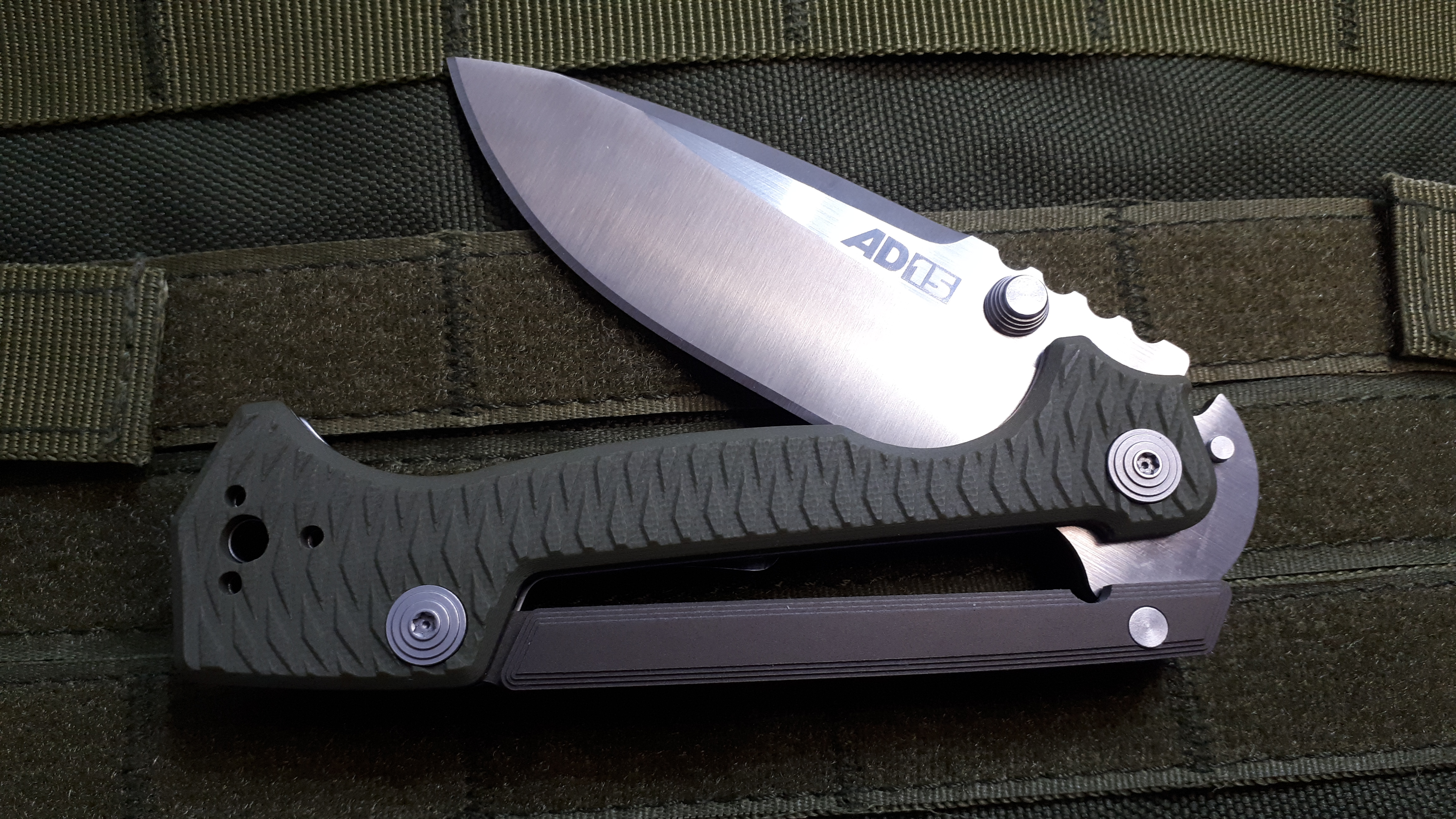Рукоять ножа, изготовленная из материала G10 зеленого цвета, не только придает ножу уникальный внешний вид, но и обеспечивает надежный и удобный захват. Ее оригинальная фактура гарантирует отличное удержание в любых условиях. Верхняя часть рукояти, "коромысло", выполненная из алюминия, увеличивает долговечность и функциональность замка, делая использование ножа максимально удобным и безопасным.