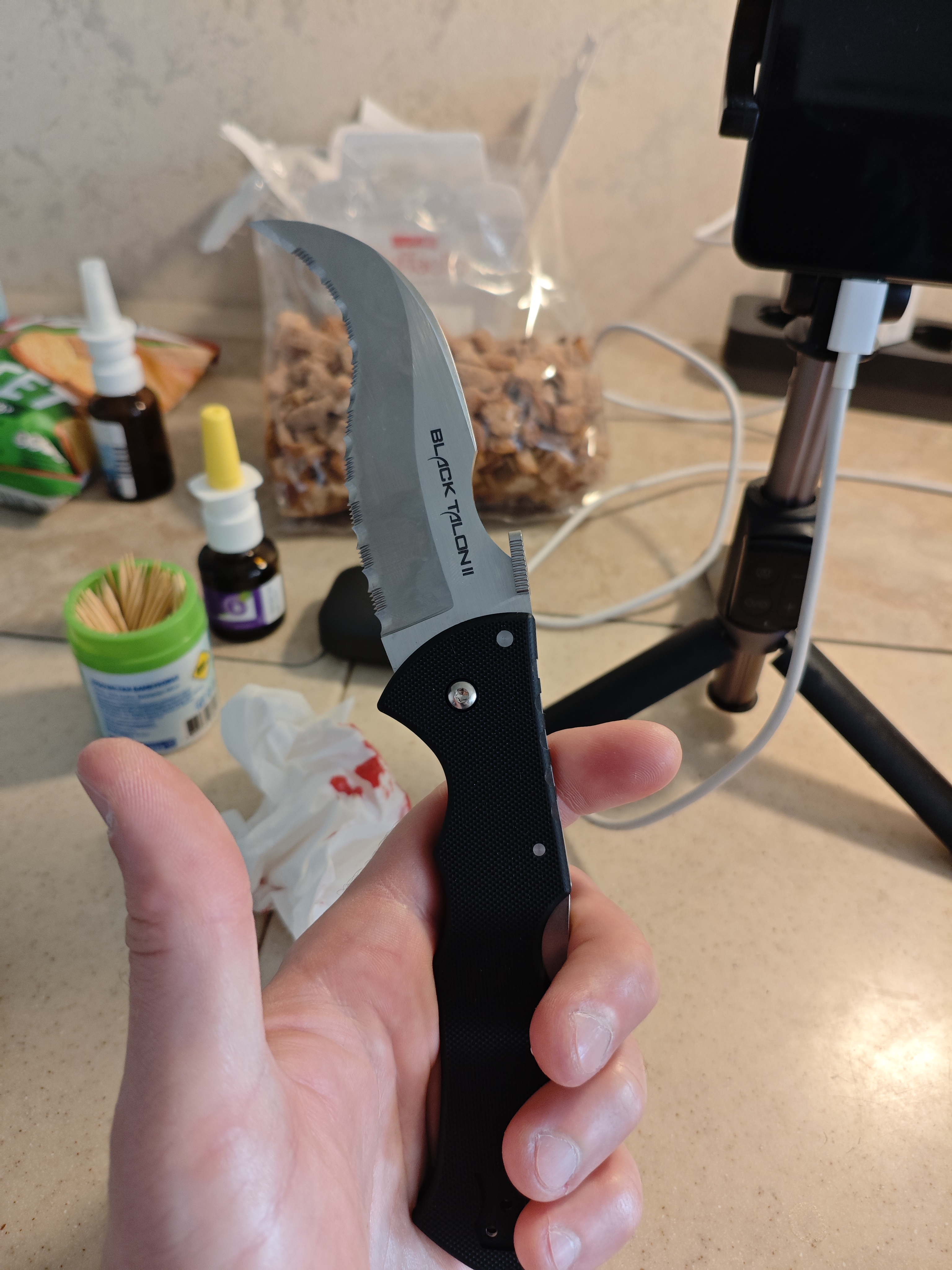 Очень долго хотел себе этот нож, останавливали сомнения по поводу практичности. В итоге взял и ни разу не пожалел. Лучше никогда не попадать в ситуации где пришлось бы применить этот нож так как он был задуман, но если вдруг... я уверен он не подведёт.
