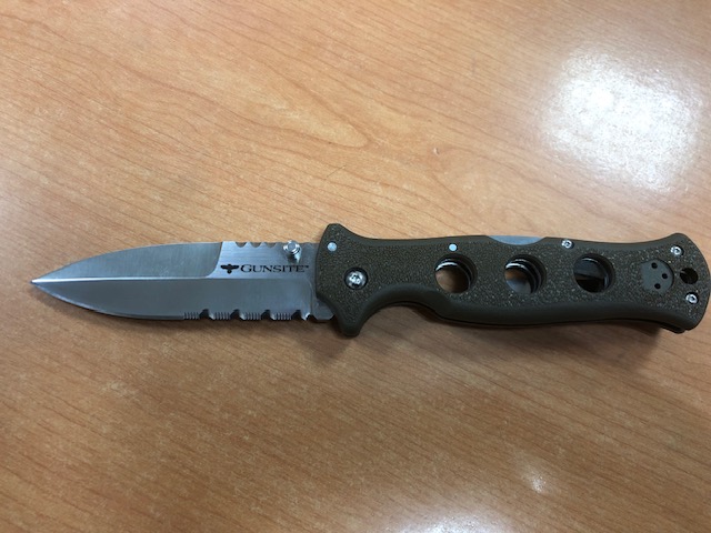 Gunsite Counter Point I — модель из коллекции Gunsite от компании Cold Steel. Названа в честь учебного центра Gunsite Academy. Представляет собой весьма стильный нож с копьевидным клинком из AUS-10A, который к тому же ещё и оснащён серрейтором. Отлично подойдёт как в качестве EDC, так и в качестве ножа для выездов на природу. За его внешний вид этот нож можно даже назвать тактическим. Рукоять модели обладает эргономичной формой и выполнена из материала Griv-Ex, комфортно сидит в руке и обеспечивает надежный хват. Замок ножа, Tri-ad lock, считается одним из самых надежных замков в мире. Он намертво фиксирует клинок, исключая какие-либо люфты. Нож оборудован двухпозиционной клипсой для ношения.