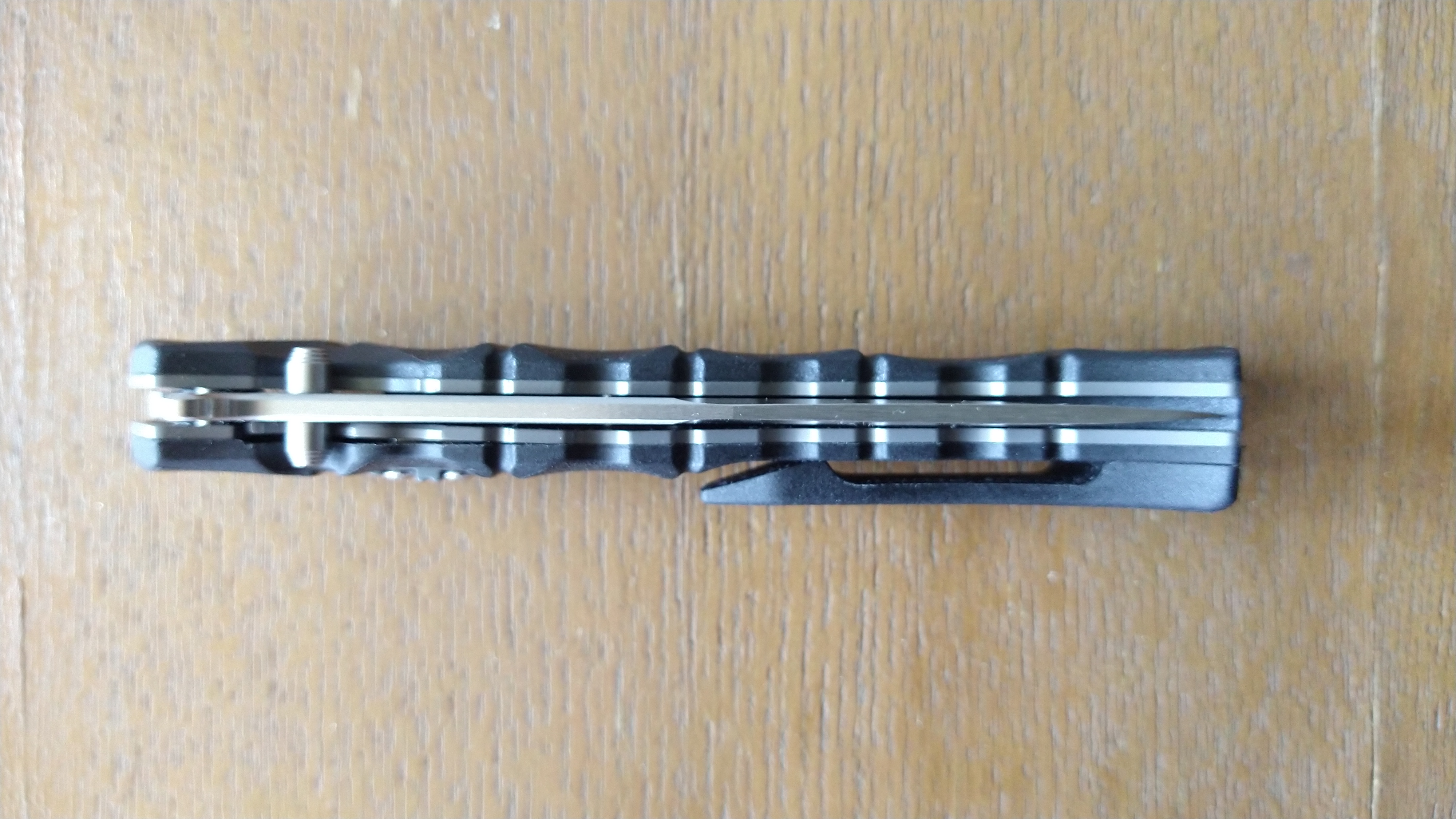 Спасибо за нож!Нож изящный,красивый,флипует,словно пуля,из коробки острый,клин по центру,люфта не наблюдаю,об карман джинс раскрывается отлично,только..