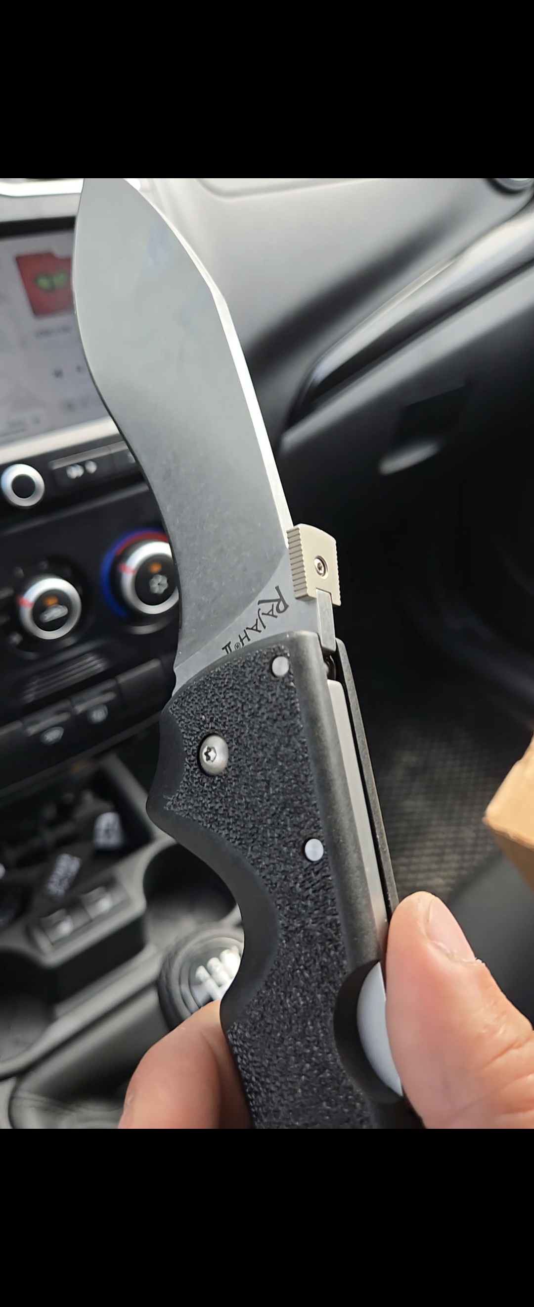 Складной кукри от Cold Steel. Несмотря на немалые размеры, нож можно носить даже в джинсах, о чем свидетельствует двухпозиционная клипса. Спуски на клинке идут от обуха, поэтому нож в целом неплохо режет, однако создавался он для того чтобы рубить или выполнять другую грубую работу. Удобен для открытия и левой и правой рукой, из-за установленного вейва. Он же помогает ножу раскрыться при вытаскивании из кармана.