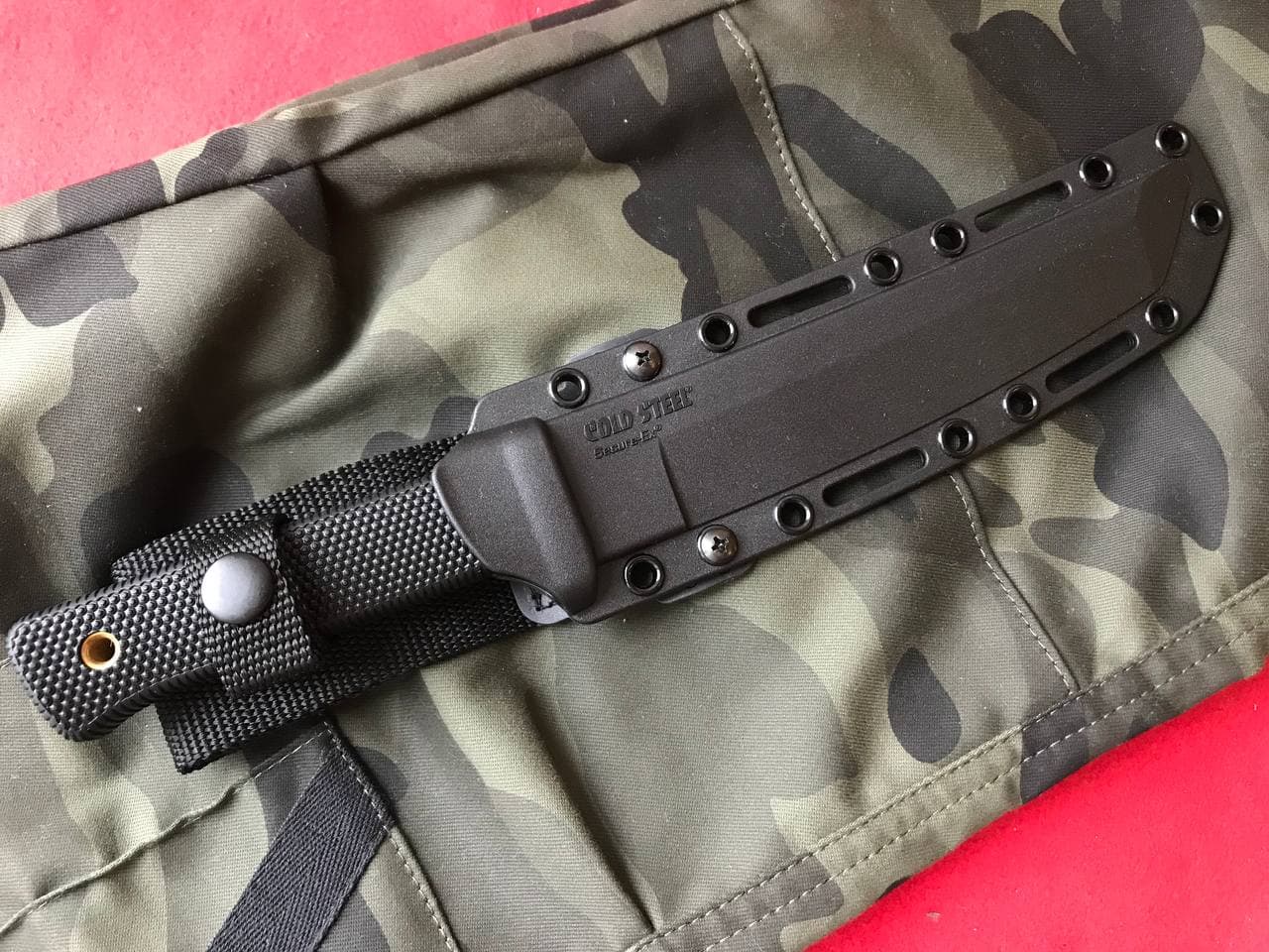 Самый бюджетный из линейки Recon Tanto. Как и подавляющее большинство ножей Cold Steel имеет небольшие огрехи массового производства: не совсем симметричная геометрия ребер на лезвии слева и справа, черновая заточка режущей кромки, небольшая щель между половинками ножен. Но эти факторы неприемлемы только для полочного или коллекционного ножа. Для рабочего инструмента это не имеет принципиального значения. Нож очень крепкий, удобный и не тяжелый. Отличный инструмент для вылазок на природу с костром и разбивкой лагеря. Лезвие типа Танто - самый лучший выбор для ковыряния острием чего-нибудь.