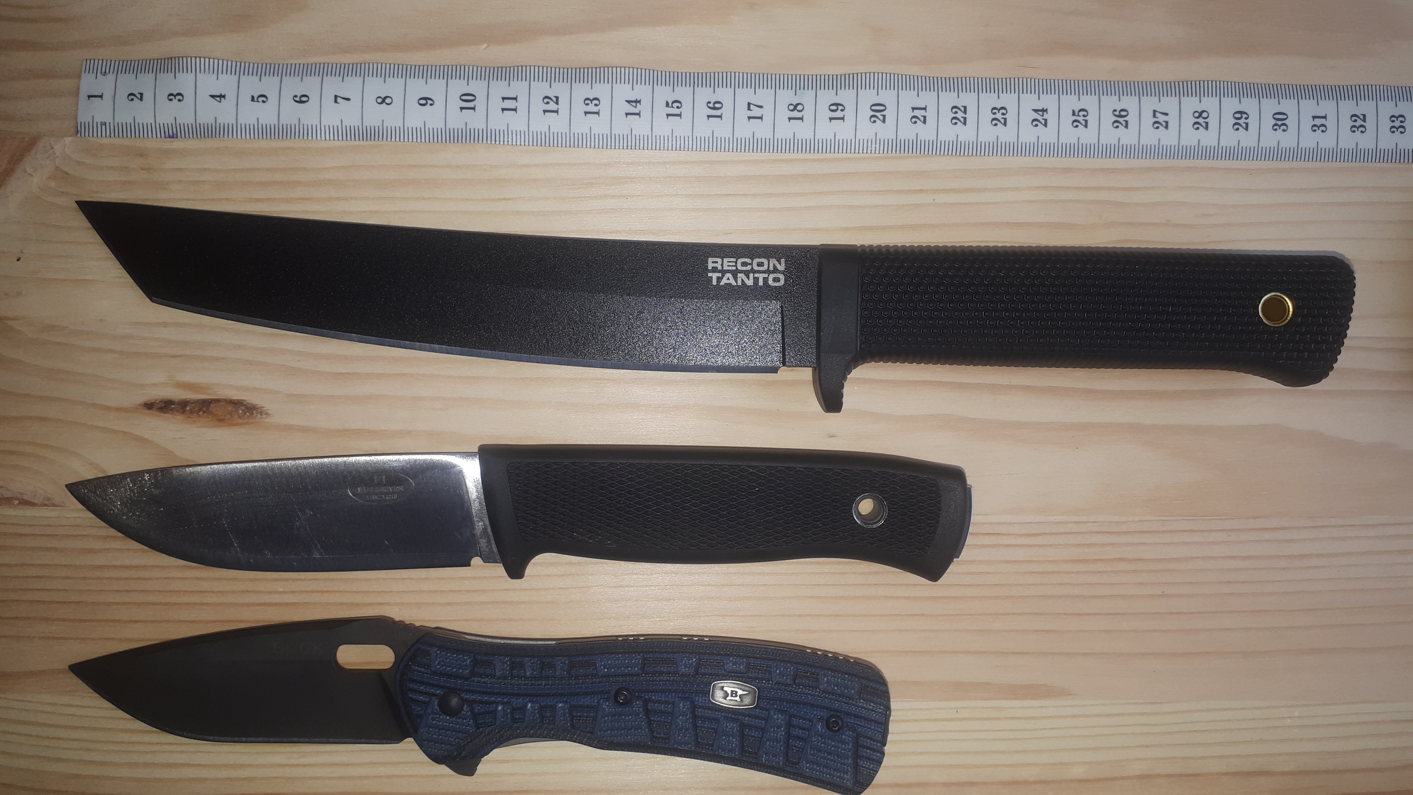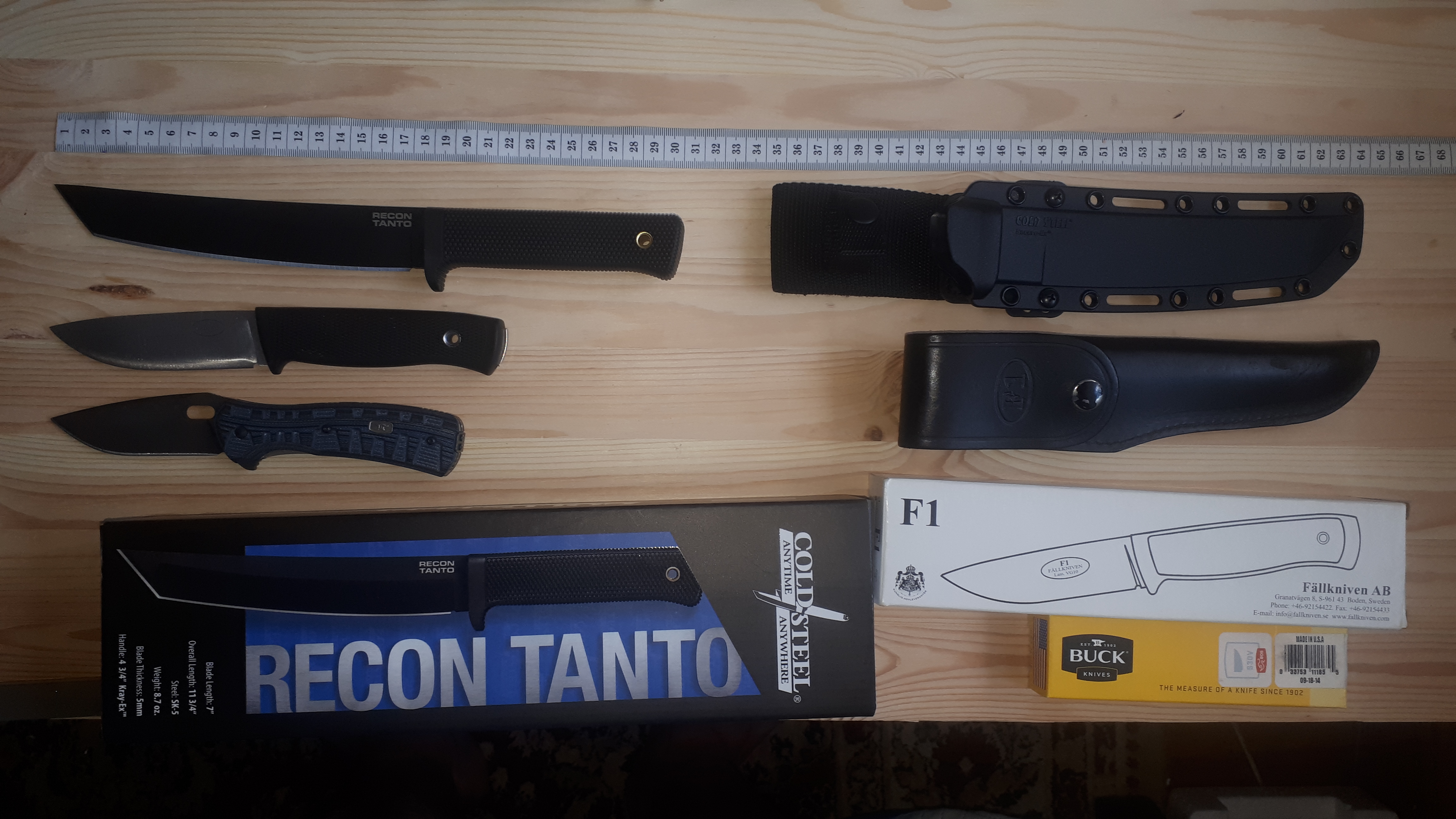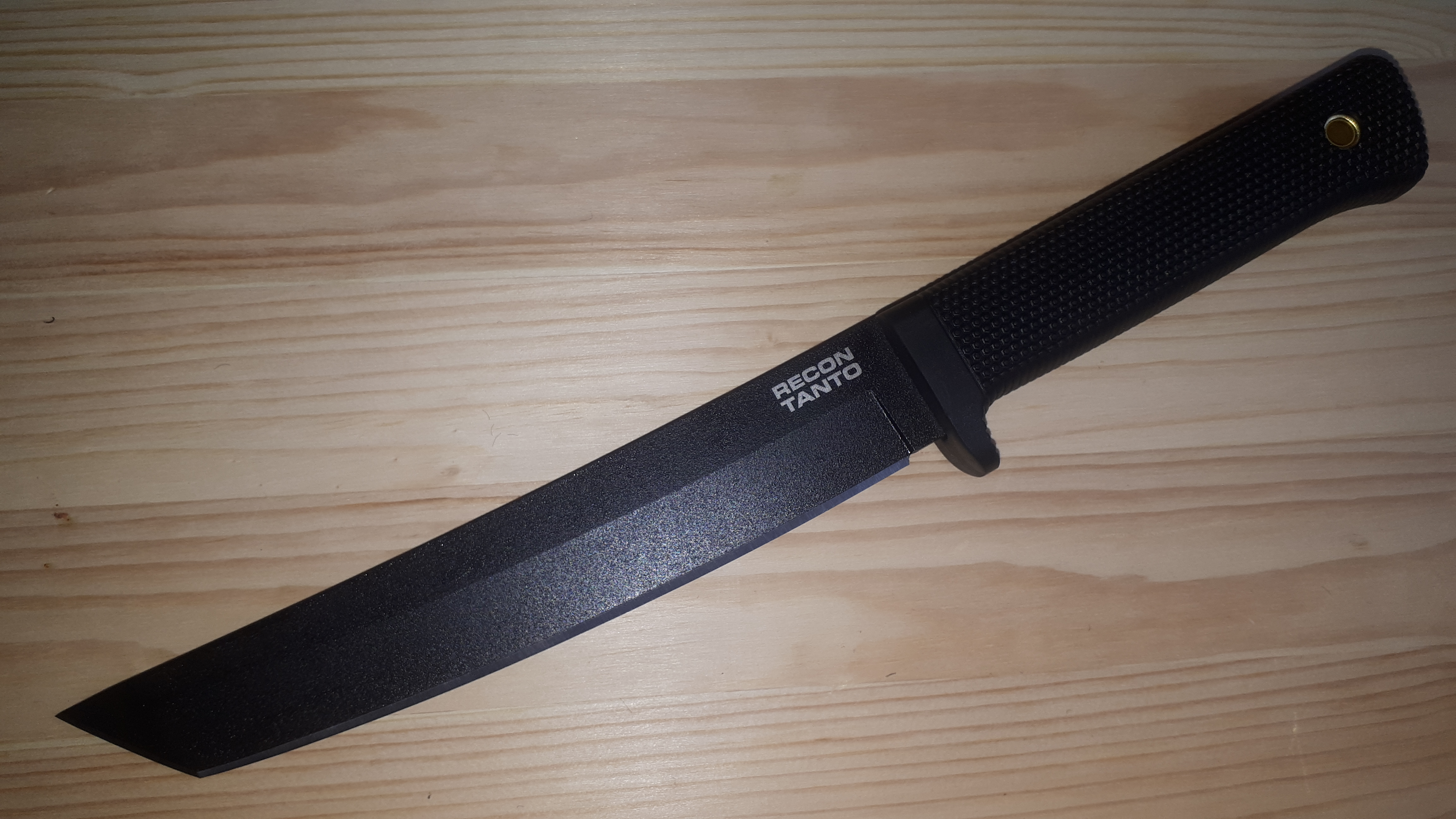 Второй мой Recon Tanto, из углеродки. Кроме него уже более 3х лет пользуюсь таким из AUS-8. Отличия - размер пяты на клинке из углеродки меньше, покрытие как мне показалось более стойкое. Recon Tanto со мной всегда и везде. Когда режу им тортик - никто больше не спрашивает зачем он мне, т.к. тортик порезанный им сразу выходит отдельными кусочками. А форма американский танто позволяет легко резать от центра тортика. AUS-8 нарезал их не один десяток. Посмотрим как будет жить ржавейка SK-5. Кстати ни в SK-5 ни в AUS-8 клинок от щелбана не звенит, как это делают Bushman и Bowie Bushman. Ну и конечно Recon Tanto отлично строгает веточки, режет мясо, батоны, а вот твёрдую колбасу плоховато, радость как от разрезания черенка лопаты.