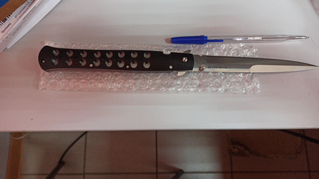 В сторону эмоции. Заказал-дошёл, хотелось быстрее, но быстрее не куда; удобная оплата-при получении, если в пункт выдачи; первые два дня болели пальцы, те которыми открывал фиксатор и об шпенёк, сейчас норм; по способу открытия-либо инерционно выкидывать, либо об выступ-об карман ли или вытащил и об ногу открырыл, мне так убобнее; клипса-намертво на карман садится, даже сомнения удобно ли, но лучшее так.