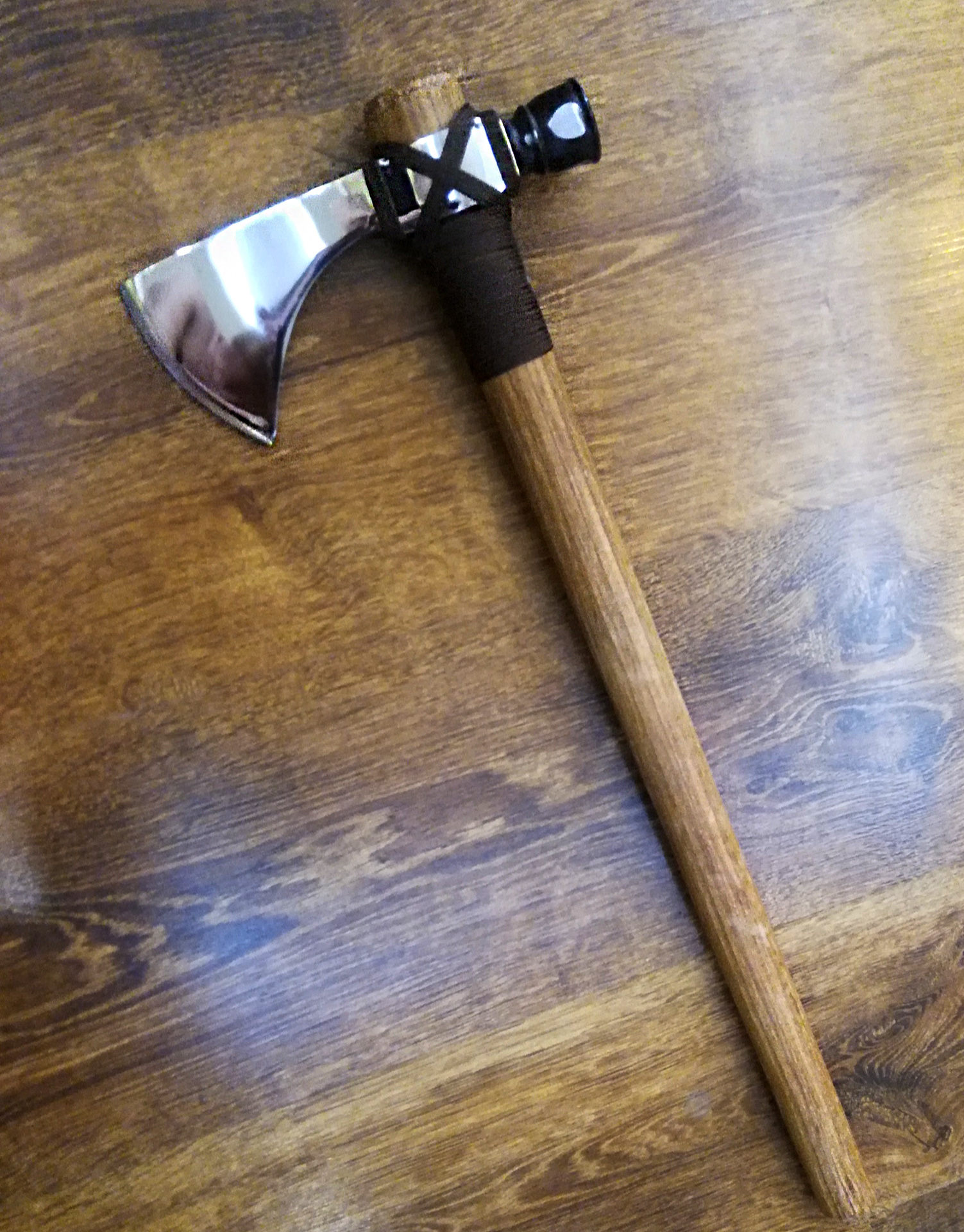 Томагавк отличный. Качеством доволен. Хорошо сбалансирован. Единственное неудобство, на мой взгляд, каплевидное сечение рукояти, что несколько затрудняет его самостоятельное изготовление.